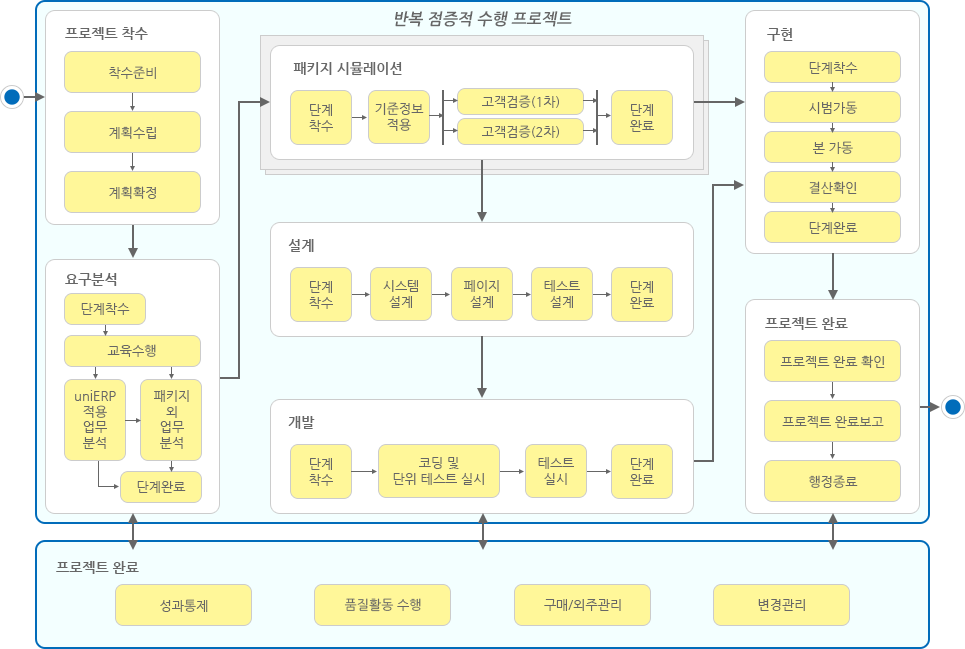 - 사용자로부터 정의된 요구사항을 uniERP프로세스 및 운영방법 관점에서 몇 단계의 교육을 통해 구체화하고, 상세화 함으로서 시스템에 대한 보다 정확한 이해를 도모하고,