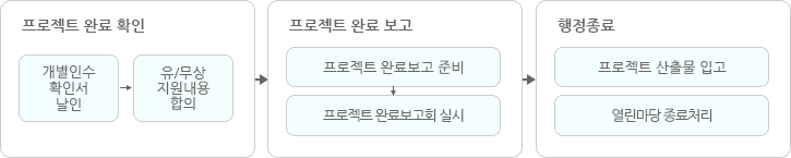 - 행정종료 : 산출물 보고 및 행정종료와 정보공유
