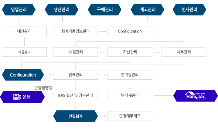 - 각 모듈별 자동전표 생성으로 물류/회계간 데이타 일관성 유지