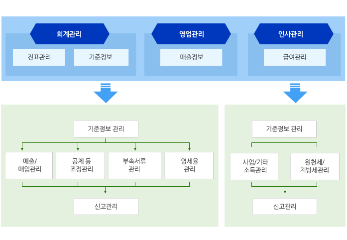기업 경영에서 매우 중요하고, 각종 경영 의사결정에 중요한 요소로 작용하는 세무 문제 등의 재무적 정보를 시스템으로 제공합니다.