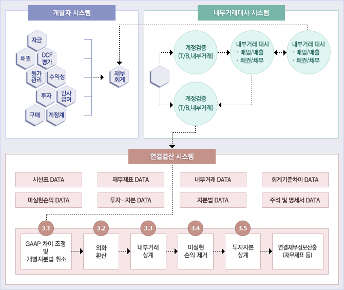 - 멀티 법인간의 재무제표를 연결 추출하여 연결재무제표를 제공합니다.