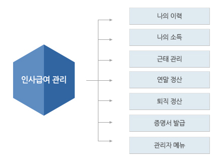 - 개인별 각종 증명서(재직증명서, 근로소득증명서 등) 발급 및 출력 기능을 제공합니다.