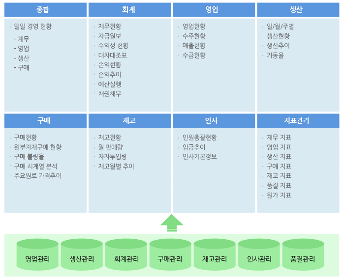 - 모기업의 KPI 에 대응 및 지표관리 , ERP와 모기업에 수신된 정보의 차이현황 등의 조회 화면을 제공합니다.